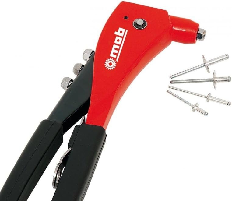 Le riveter MOB est un outil complet et pratique, conçu pour les travaux d’assemblage nécessitant des rivets. Il comprend une pince robuste et ergonomique, facile à manier, ainsi qu’un assortiment de rivets pour répondre aux besoins courants de fixation sur métal, plastique ou autres matériaux.